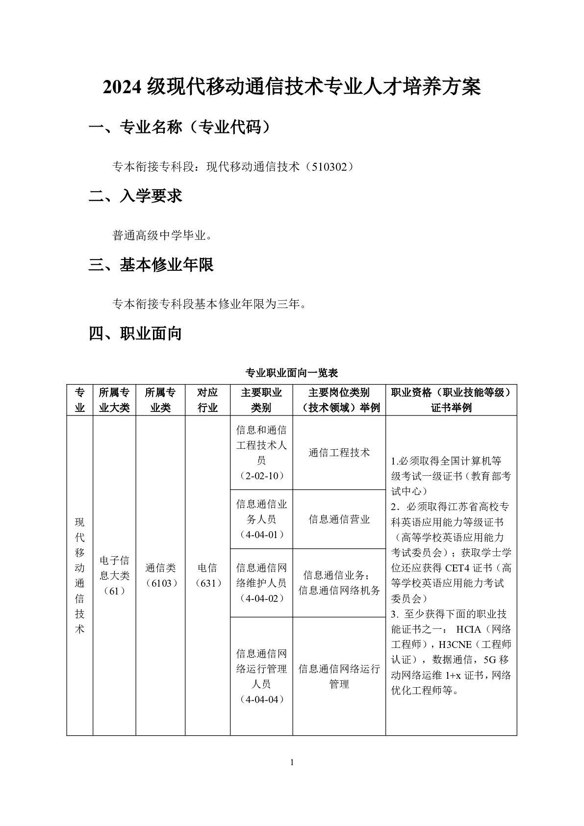 2024级现代移动通信技术专业人才培养方案(职教一)