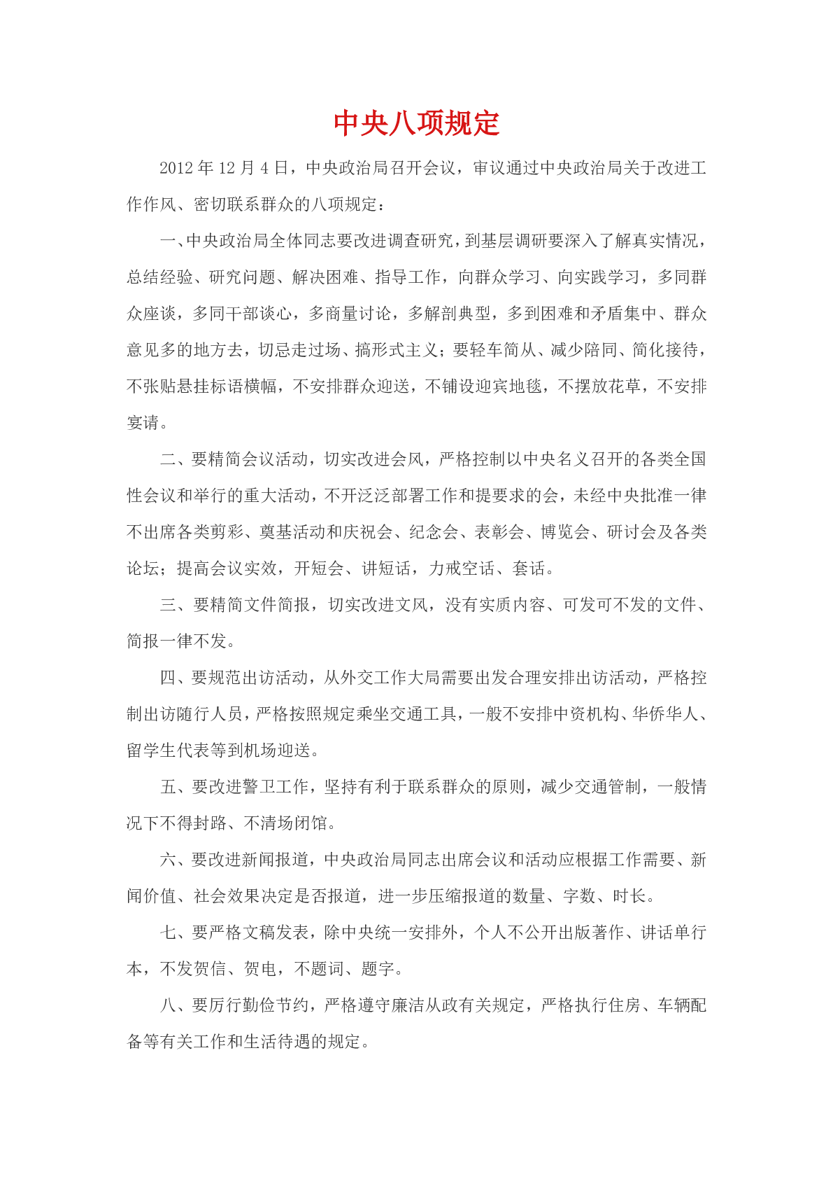 学习资料|中央八项规定