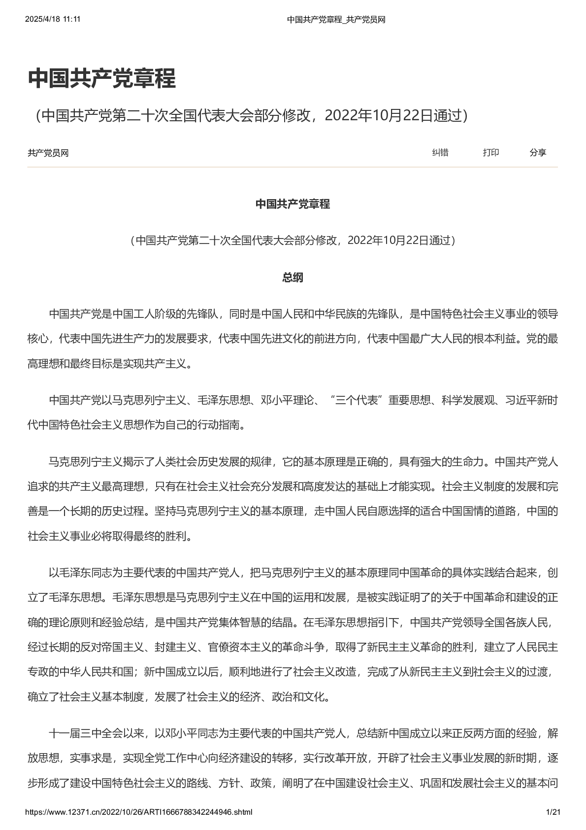 中国共产党章程