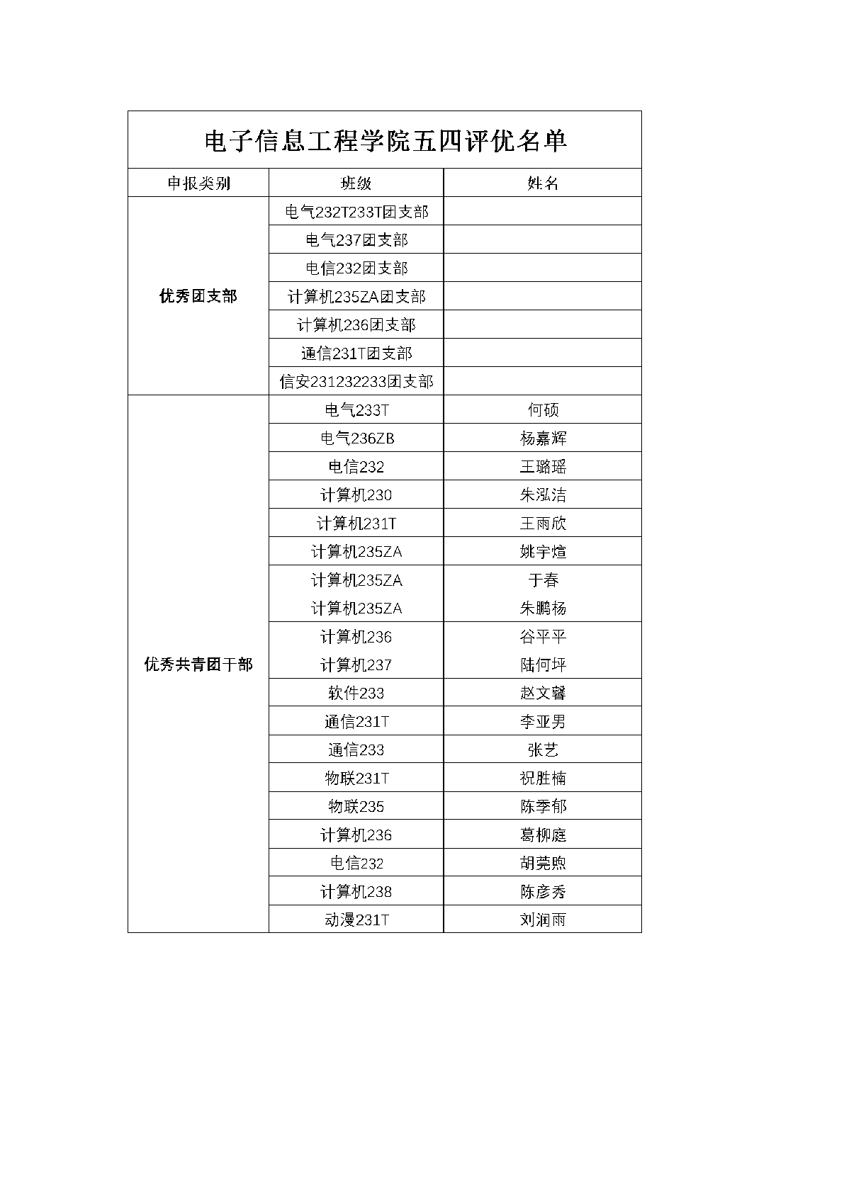 2024—2025学年Beat365官方网站“优秀团支部”“优秀共青团干部”“优秀共青团员”的公示