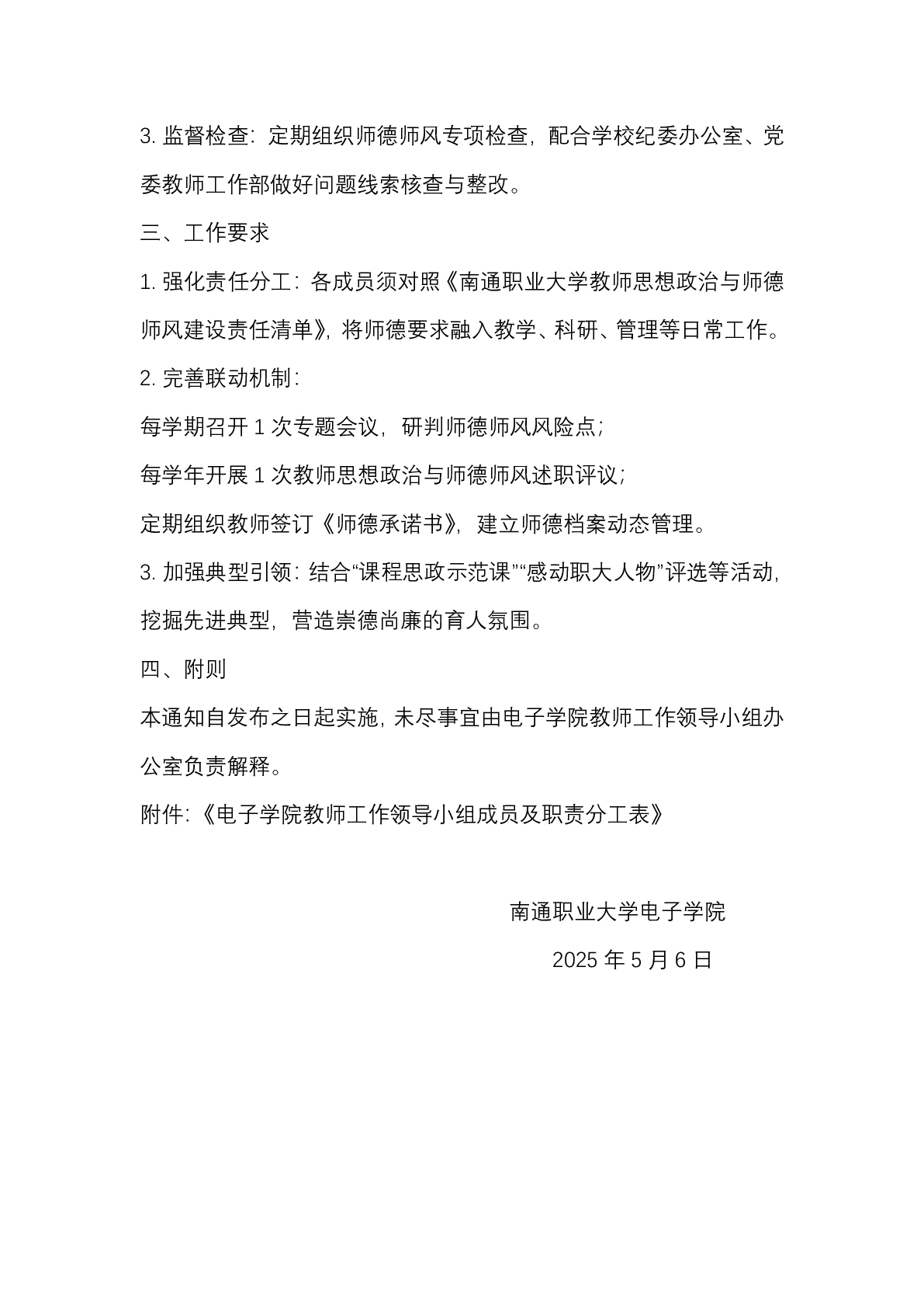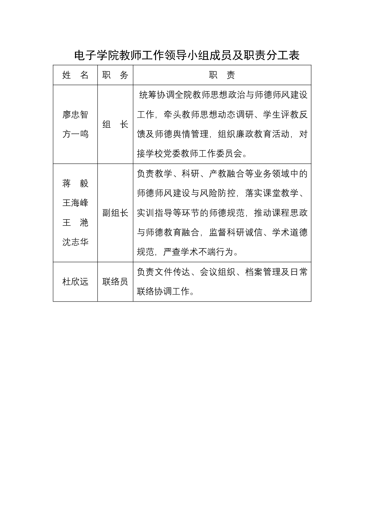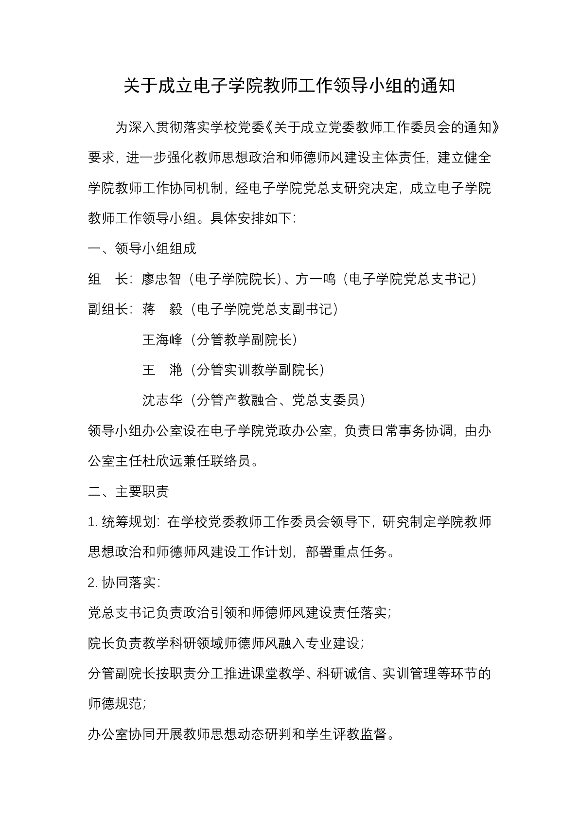 关于成立电子学院教师工作领导小组的通知