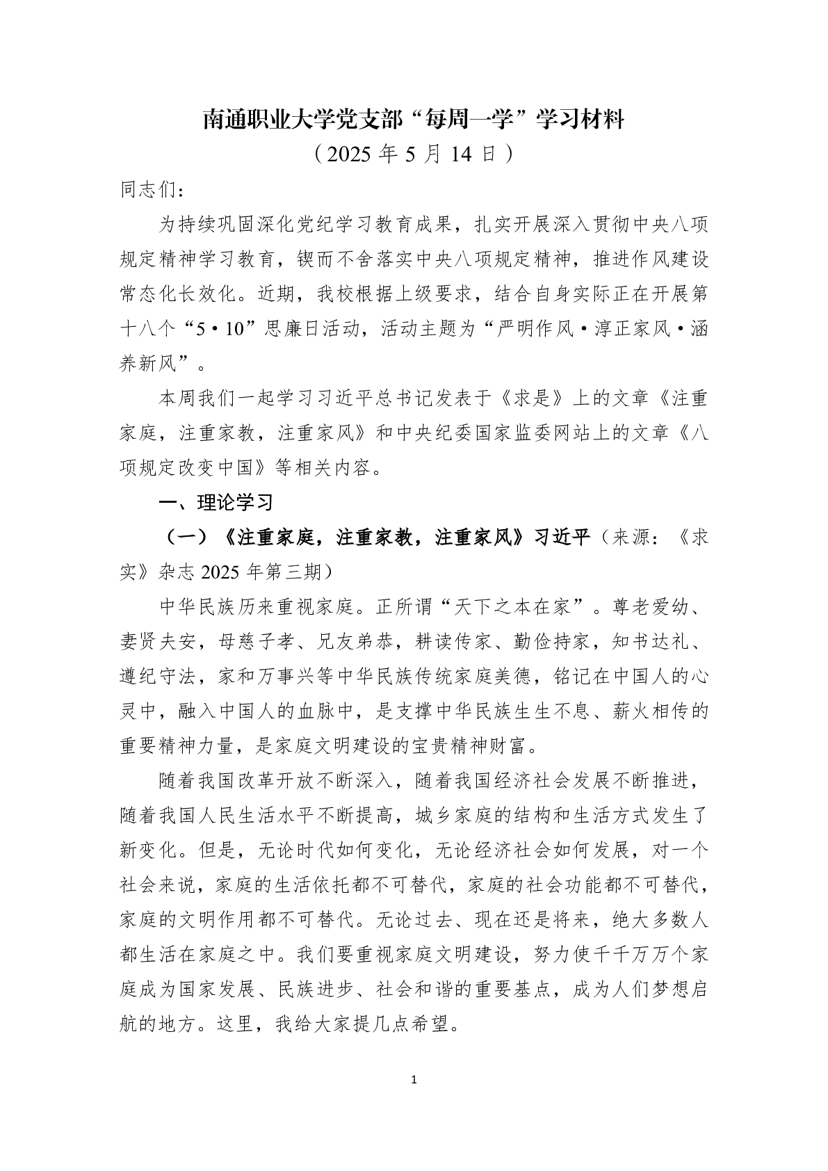 每周一学|第十二周学习材料——教工第一党支部