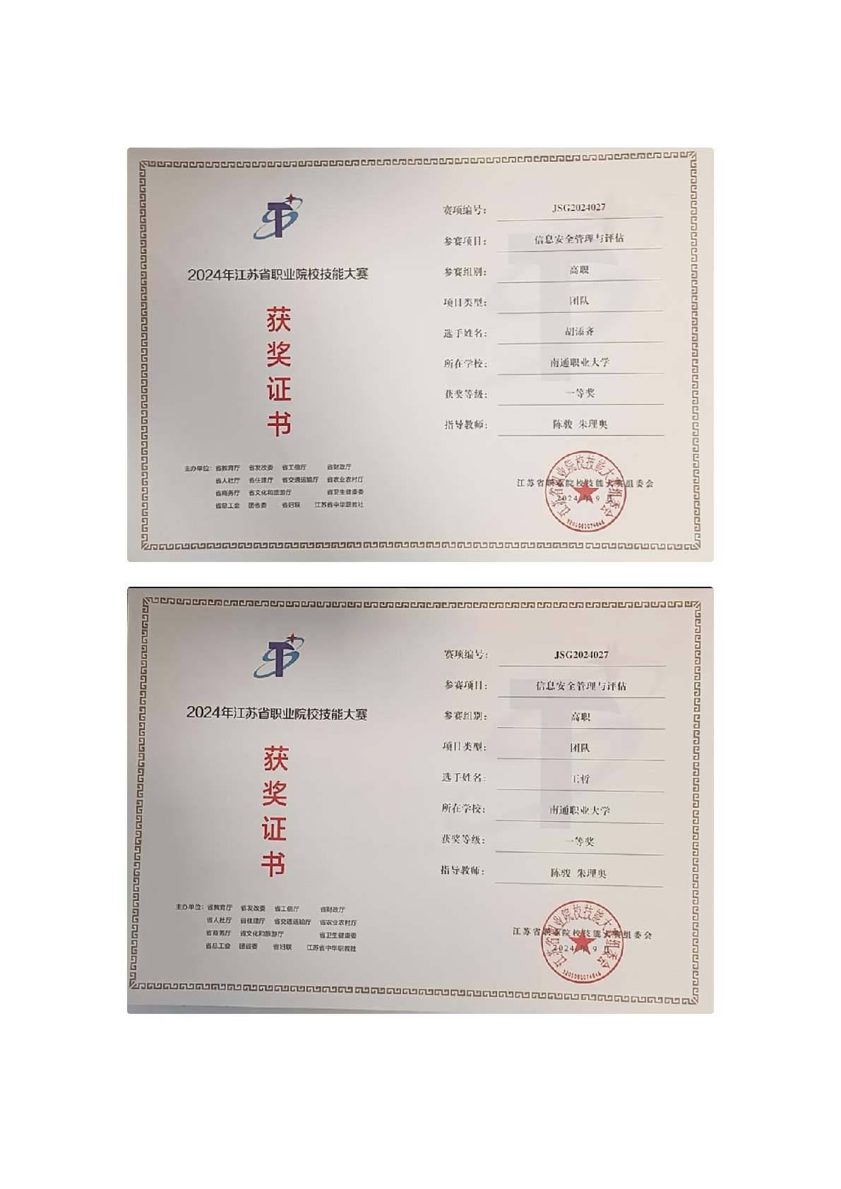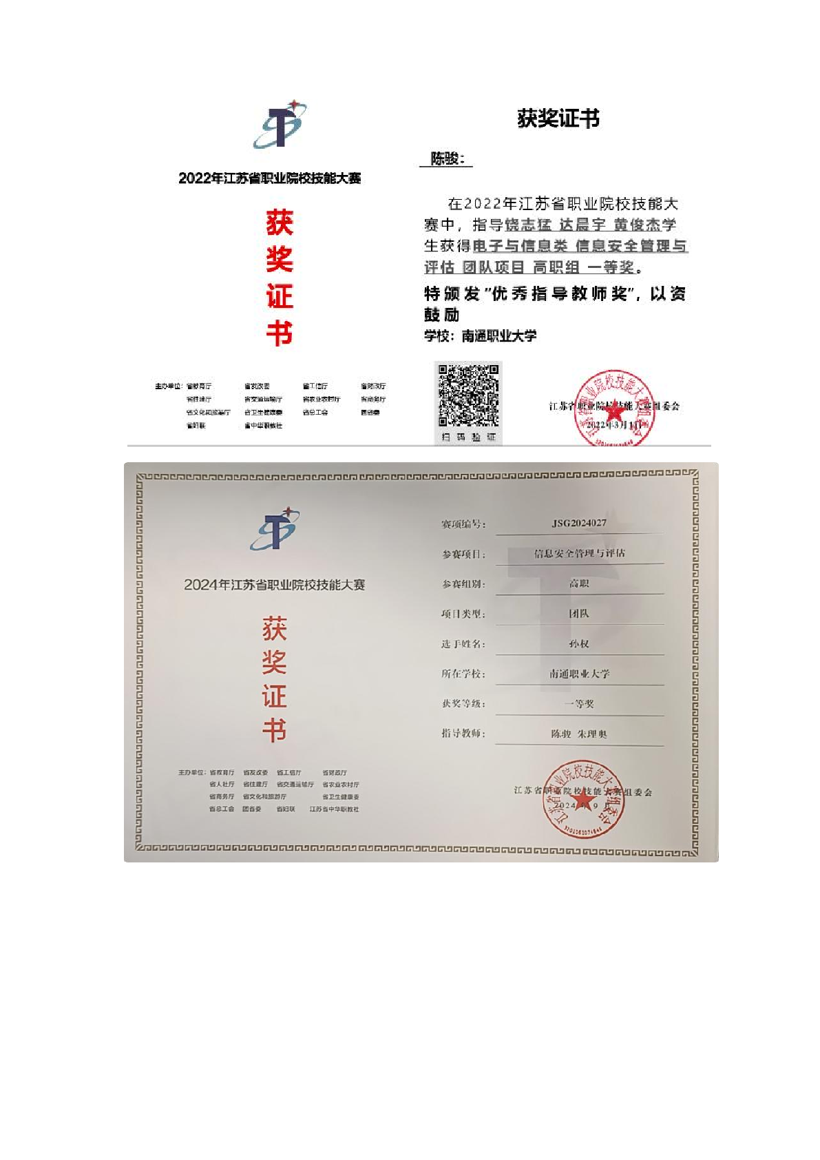 部分证书展示