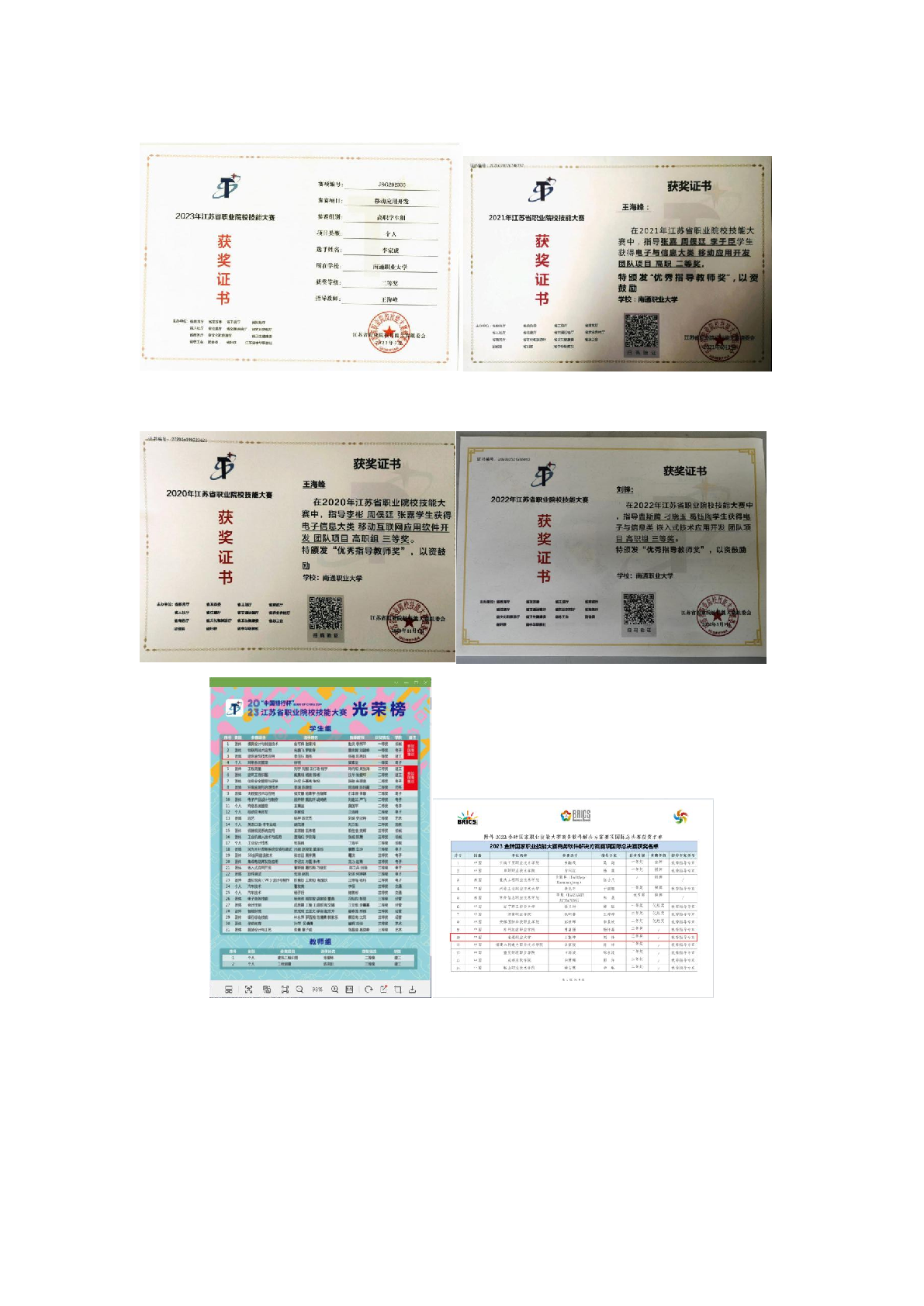 部分证书展示