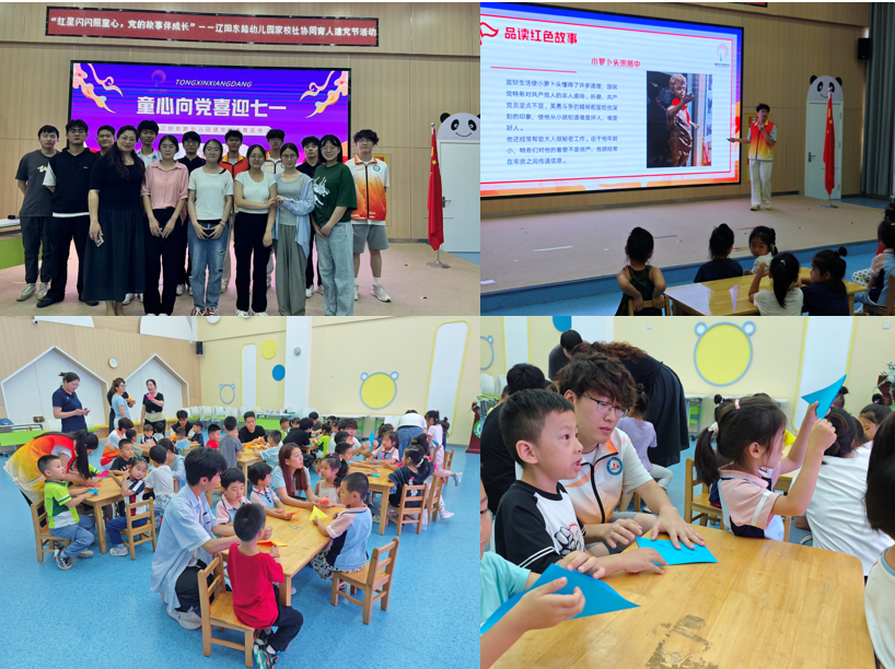 团队联合科大悦苑社区,走进辽阳东路幼儿园为小朋友们开展红色启蒙活动。志愿者们精心挑选刘胡兰、“小萝卜头”等少年英雄的故事,用图文并茂的PPT辅助讲述,让晦涩的历史变得生动可感。“五人协作折五角星” 手工环节中,孩子们在志愿者引导下分工配合,将零散彩纸变成璀璨星形,在欢声笑语中体会 “团结就是力量” 的深意。活动结束时,孩子们举着共同完成的五角星齐声高喊 “我爱祖国”,稚嫩的声音里满是纯真的热忱。