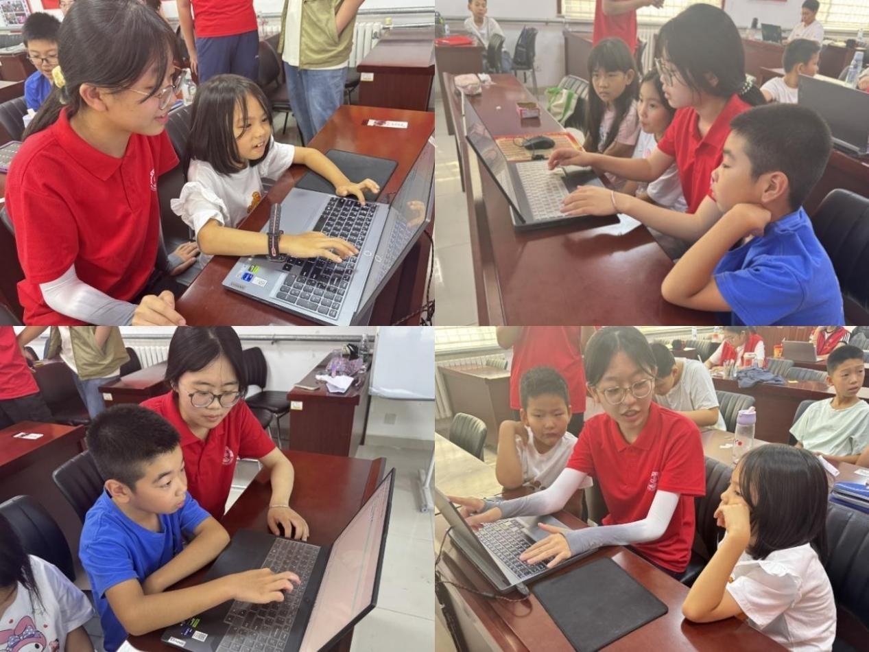 此外,实践团还带来了简单的编程启蒙讲解。成员们利用电脑上的编程软件进行实际操作讲解,先向孩子们介绍工具箱,能调用电脑里的基础功能,以及简单的指令与计算。讲解过程中,成员们现场编写简单程序并演示成果,随后,孩子们在成员的指导下轮流操作电脑,亲身体验输入指令、看到结果的过程,在动手实践中感受编程的奇妙与科技的魅力。