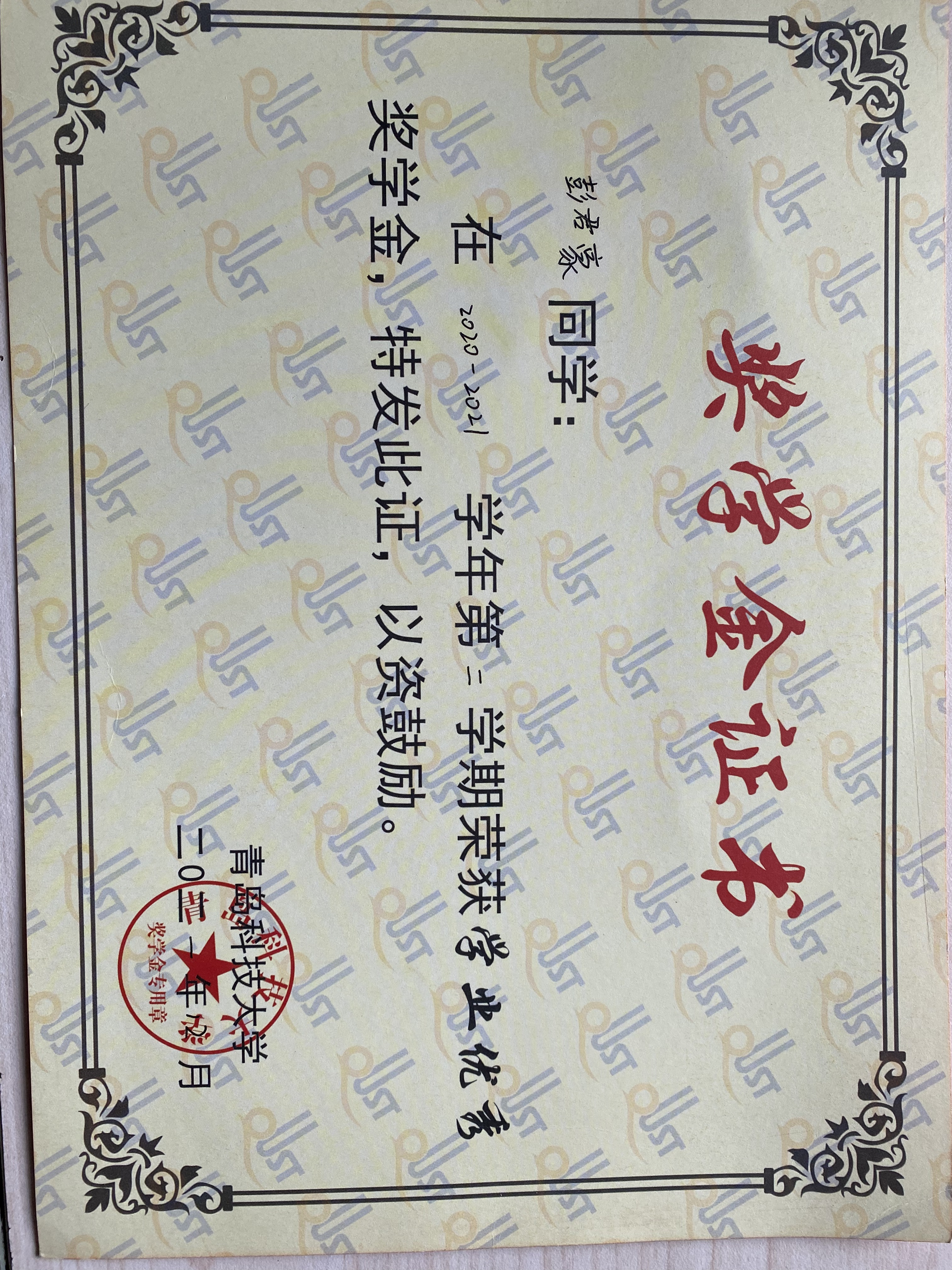 校级二等奖学金;